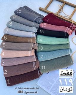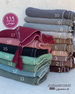 به به با اين رنگبنديش. شالهاي پليسه موجي زركدار آذر.باكيفيت ترين شال زركدار كه تا امروز داشتيم. ترند امسال كه خيلي خوشگلو جذابه روي سر. شال زركدار پاييزه . جنس فوق العاده نرم و لطيف و باكيفيته. روي جنس پارچه پاييزه توليد شده.اين پارت در 17 رنگ جذاب و خوشگل توليد شده. ابعاد 70*200. بسيار خوش ايسته روي سر.
